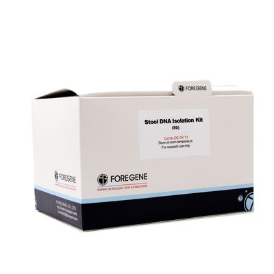 Ce kit emploie la colonne réservée à l'ADN qui peut spécifiquement lier l'ADN, une protéase toute neuve de Foregene et un système unique de tampon, qui peuvent effectivement enlever de divers inhibiteurs en résidus, sans précipitation d'extraction par solvants organique ou d'éthanol et d'isopropanol. L'opération d'extraction d'ADN des échantillons de selles peut être accomplie en 40 minutes.